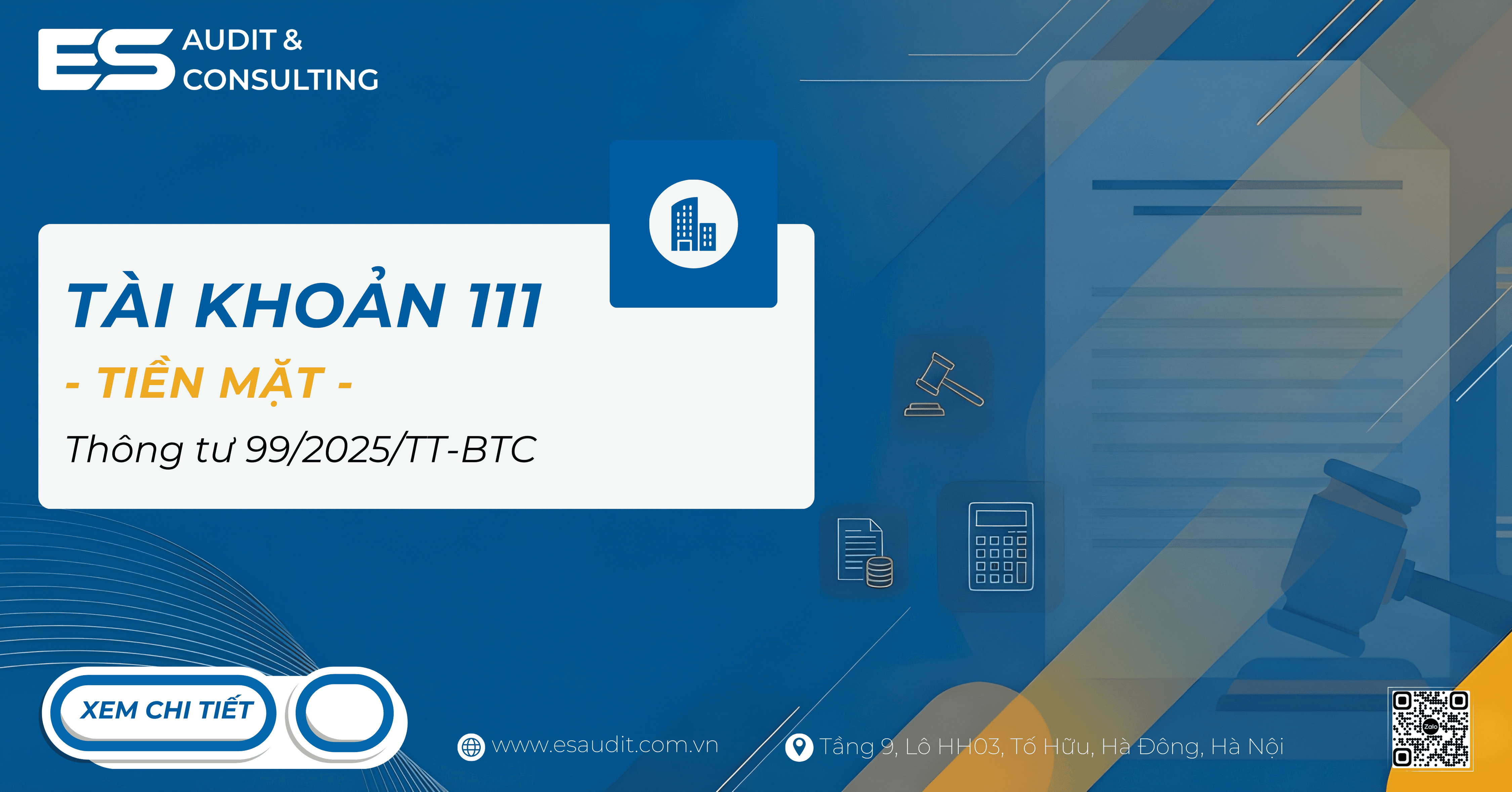 Hãng Kiểm toán ES vừa chia sẻ Tài khoản 111 theo thông tư 99. Nếu có vấn đề chưa rõ hoặc cần hỗ trợ, bạn đọc có thể để lại bình luận bên dưới hoặc đặt câu hỏi theo đường dẫn dưới đây để được hỗ trợ trong thời gian sớm nhất: https://esaudit.com.vn/hoi-dap/. Cảm ơn các bạn, chúc các bạn thành công!