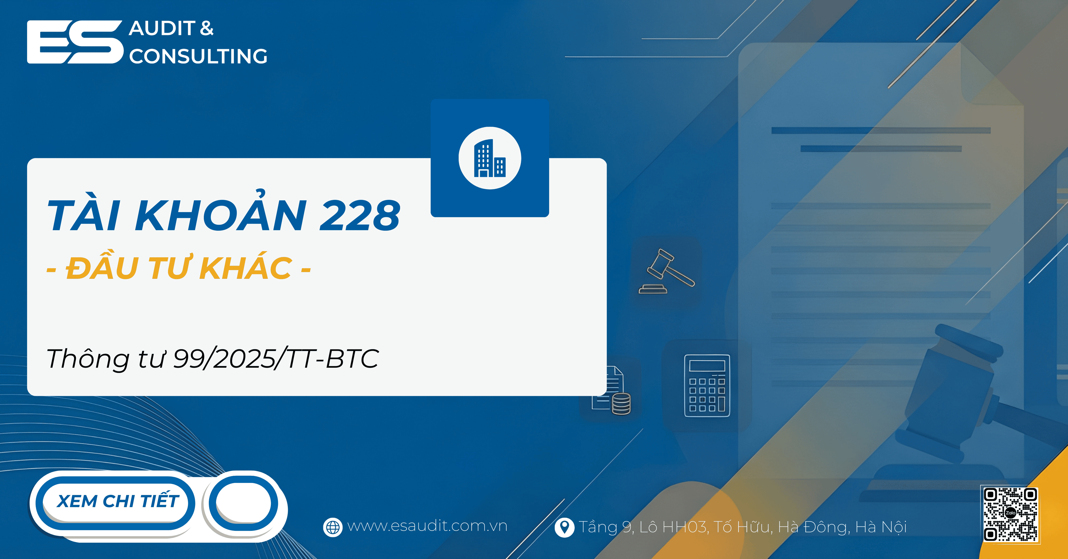 Trên đây, Hãng Kiểm toán ES vừa chia sẻ bài viết Tài khoản 228 theo Thông tư 99/2025/TT-BTC. Nếu có vấn đề chưa rõ hoặc cần hỗ trợ, bạn đọc có thể để lại bình luận bên dưới hoặc đặt câu hỏi theo đường dẫn dưới đây để được hỗ trợ trong thời gian sớm nhất: https://esaudit.com.vn/hoi-dap/. Cảm ơn các bạn đã theo dõi bài viết tài khoản 228 theo thông tư 99 chúc các bạn thành công!