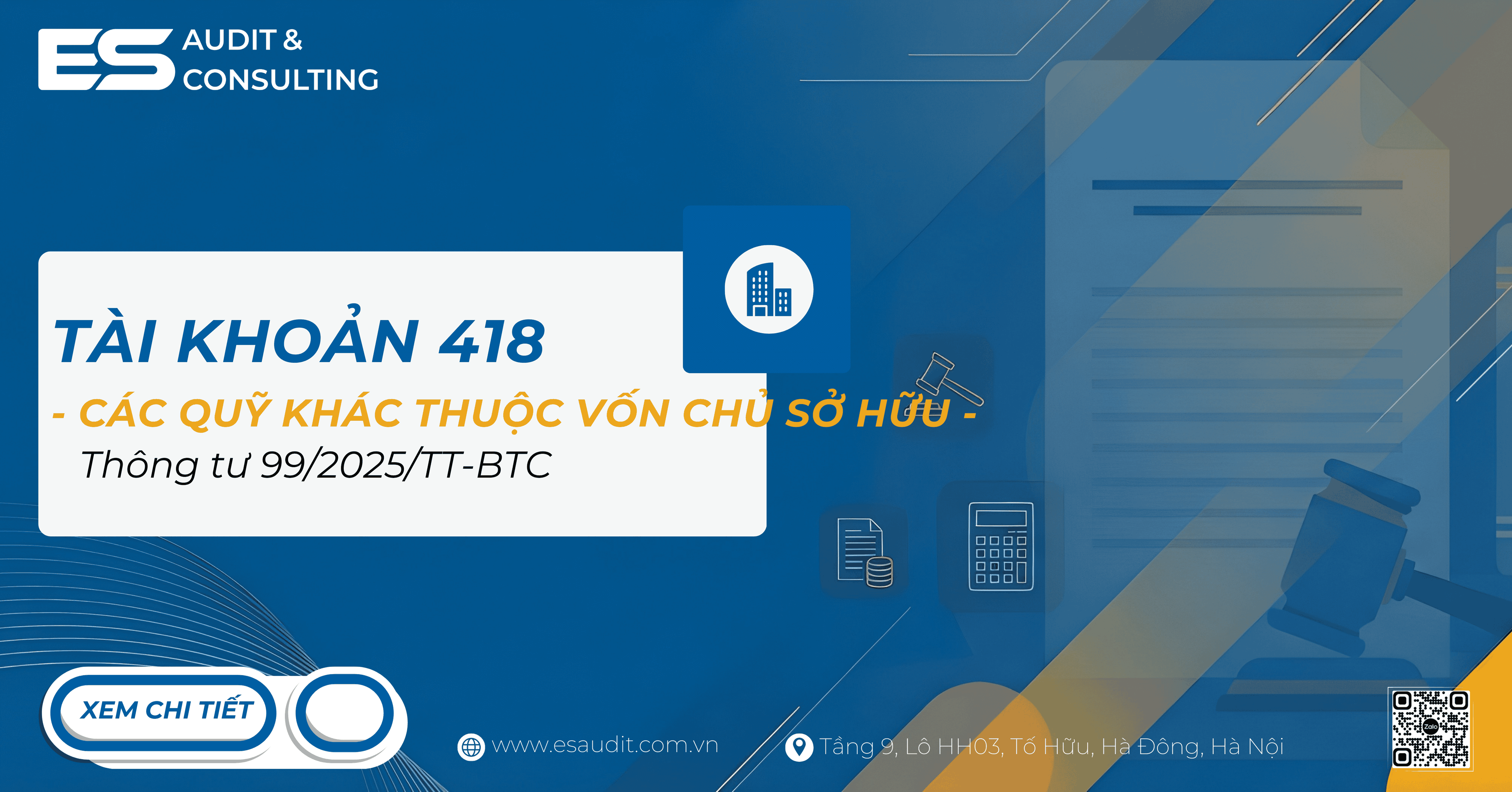 Trên đây, Hãng Kiểm toán ES vừa chia sẻ bài viết Tài khoản 418 - Các quỹ khác thuộc vốn chủ sở hữu theo Thông tư 99/2025/TT-BTC. Nếu có vấn đề chưa rõ hoặc cần hỗ trợ, bạn đọc có thể để lại bình luận bên dưới hoặc đặt câu hỏi theo đường dẫn dưới đây để được hỗ trợ trong thời gian sớm nhất: https://esaudit.com.vn/hoi-dap/.Cảm ơn các bạn đã theo dõi bài viết Tài khoản 418 theo Thông tư 99, chúc các bạn thành công!